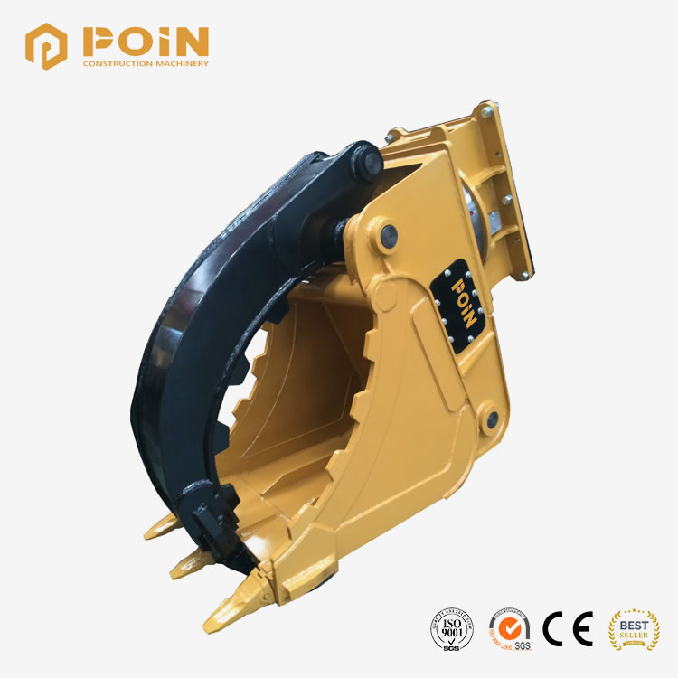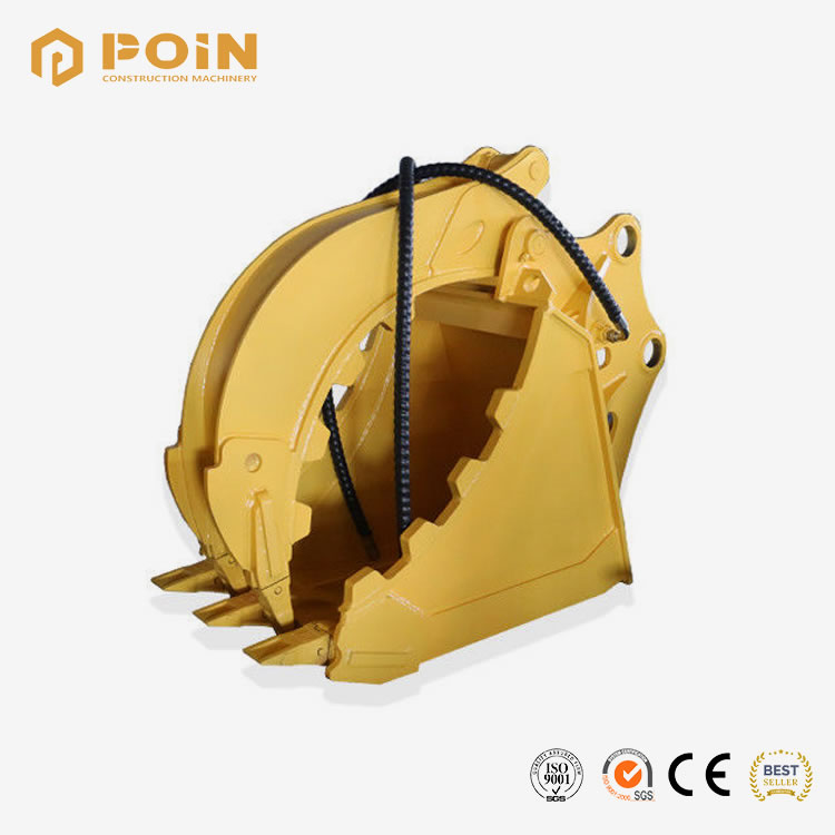 POIN Grapple bucket is divided into 2 parts including a jaw connected to the main part to create opening and closing, making the bucket convenient in grabbing materials. It Suits 1 to 50 tons’ excavator. (Could be customized for larger tonnage). Characteristic: Connected with a hinge, the 2 parts could create a jaw-like function that makes sure that the materials could be held tightly and moved away in a most efficient and energy-saving way.